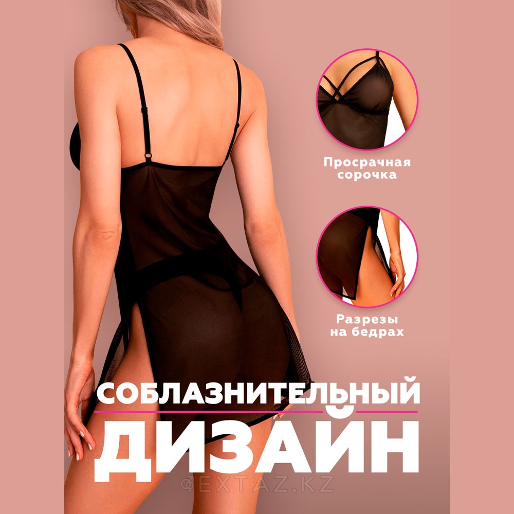 В комплект входит сорочка, стринги