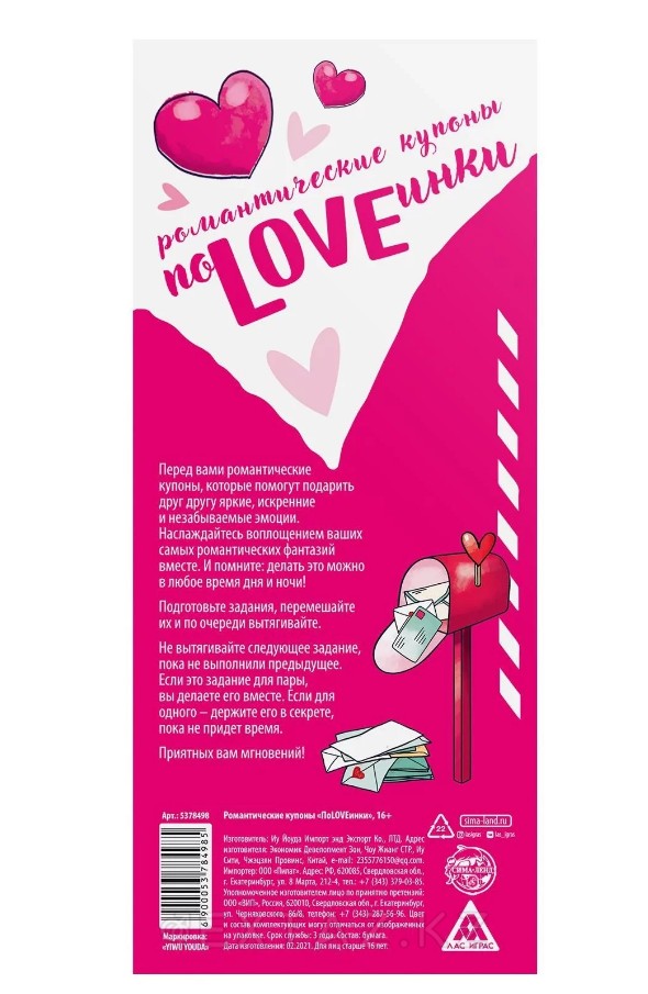 Романтические купоны для двоих «ПоLOVEинки», 16+