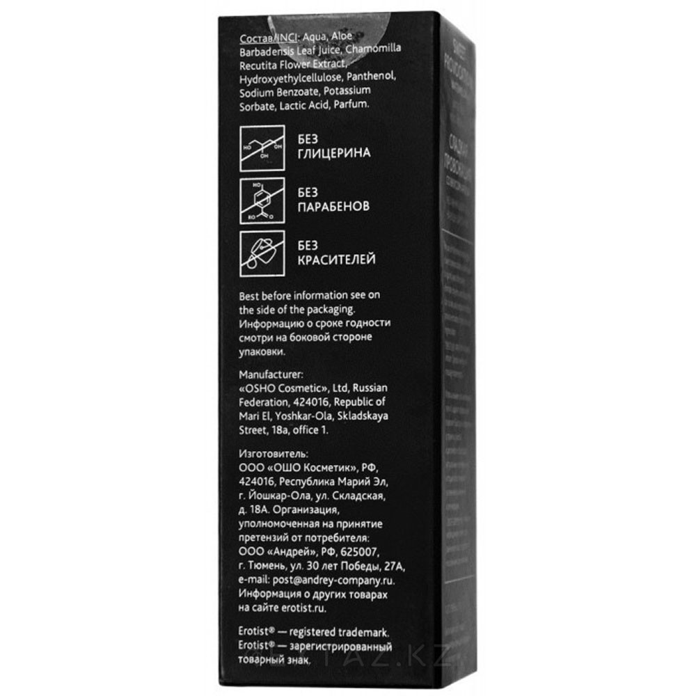 Гель имеет физиологичный уровень pH 4,0, совместим с презервативами и игрушками, не оставляет пятен, не липнет и легко смывается водой. Он подходит даже для самой чувствительной кожи, не вызывает раздражений и абсолютно безопасен при проглатывании.