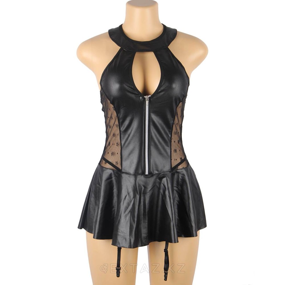 Кожаное платье со шнуровкой и юбкой-воланом Ohyeah +стринги, XL-2XL
