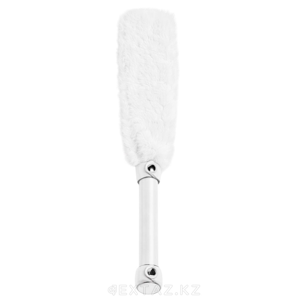 • двусторонняя шлепалка. С одной стороны выполнена из натуральной кожи белого цвета, с другой - нежнейший мех;