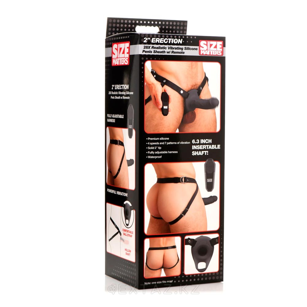 Фаллопротез с вибрацией Size Matters 2" Erection 28X Realistic Vibrating Silicone Penis Sheath, черный, 16х4.3 см