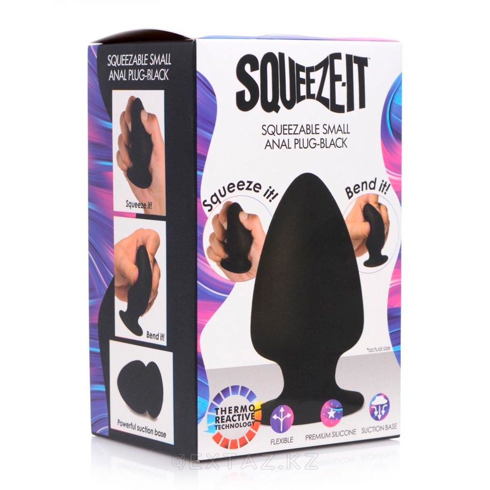 Мягкая гибкая анальная пробка Squeeze-It Silicone Anal Plug Small, S, черный, 9х5.1 см