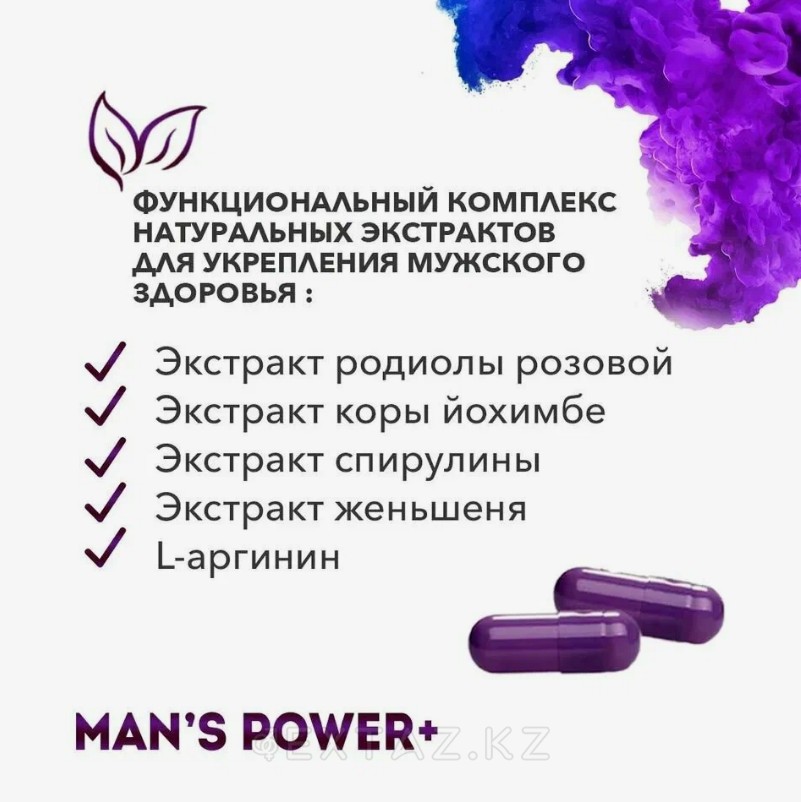 Средство стимулирует центральную нервную систему, повышает работоспособность, устраняет сонливость и поддерживает здоровье половой функции. Man's Power Plus не только укрепляет эрекцию, но и способствует улучшению качества и количества спермы, повышая вероятность зачатия.