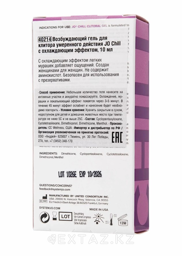 Формула JO Chill разработана с заботой о женском теле. Он содержит гипоаллергенные ингредиенты, включая освежающий ментол, но при этом не содержит парабенов, глицерина и L-аргинина, исключая риск раздражения. Лёгкая текстура быстро впитывается, не оставляет липкости и дарит чистый, долгий эффект охлаждения.