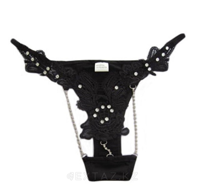 Стринги с ажурными деталями и стразами (черные)