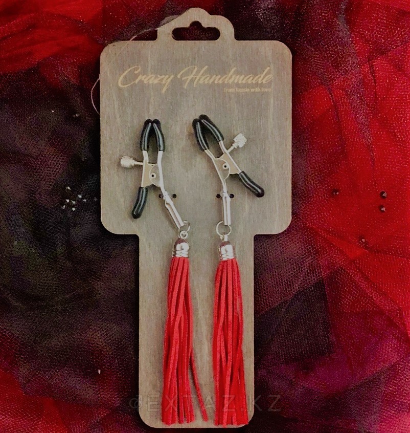 Зажимы на соски «прищепки» с кисточками из замши красные