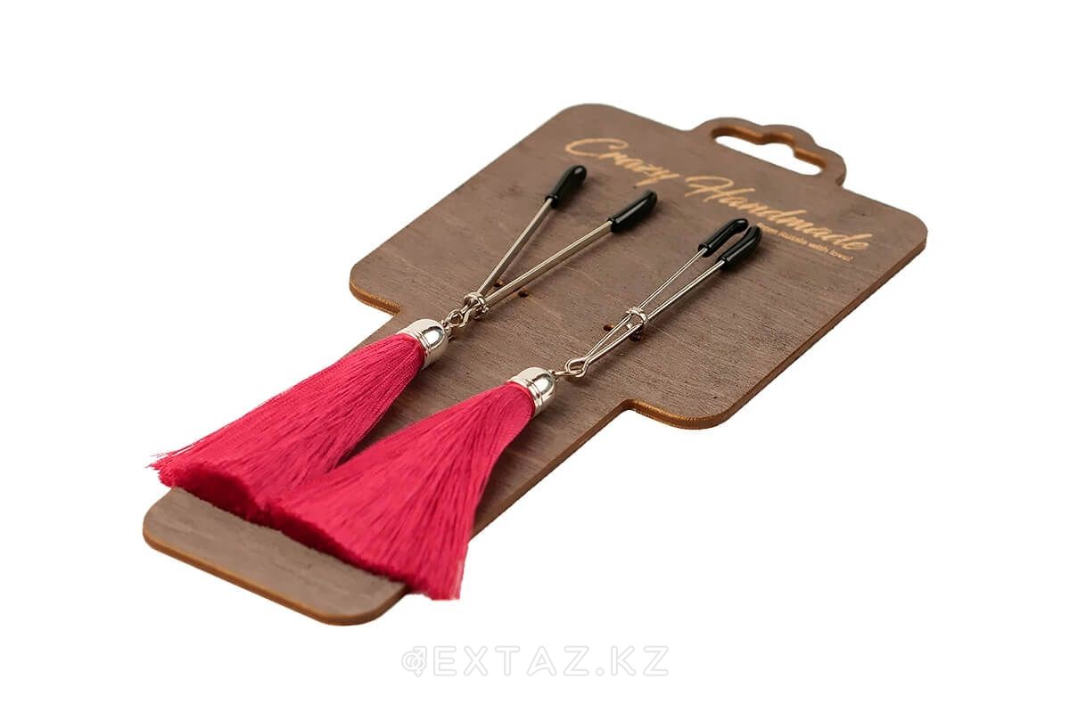 Зажимы на соски «вилки» с кисточками из шелка от Crazy Handmade — стильный и соблазнительный аксессуар, созданный для пробуждения чувствительности и изысканных экспериментов в интимной обстановке.