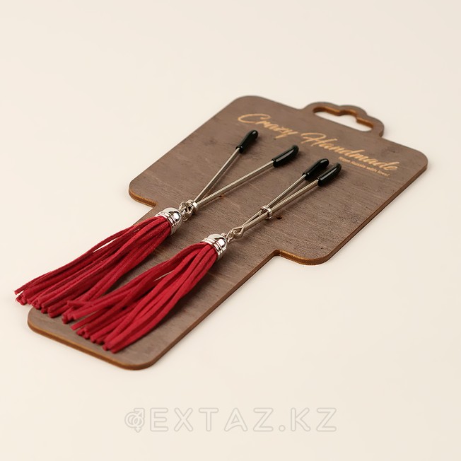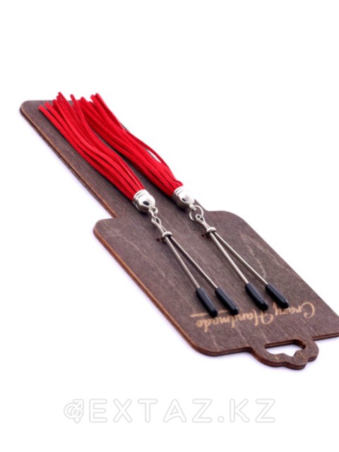 Зажимы на соски «вилки» с кисточками из замши, красный