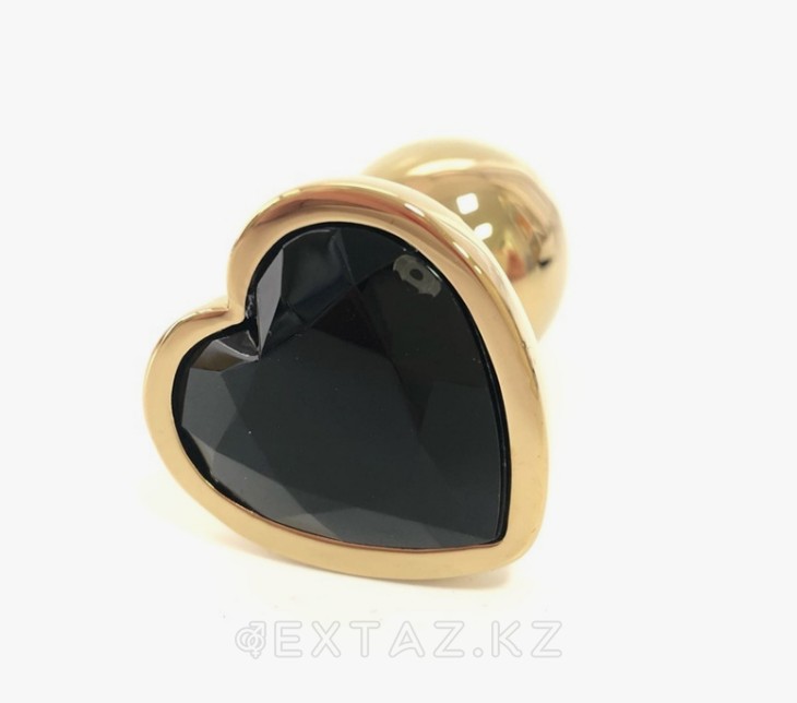 Золотая анальная пробка с чёрным кристаллом в форме сердца от Lovetoy