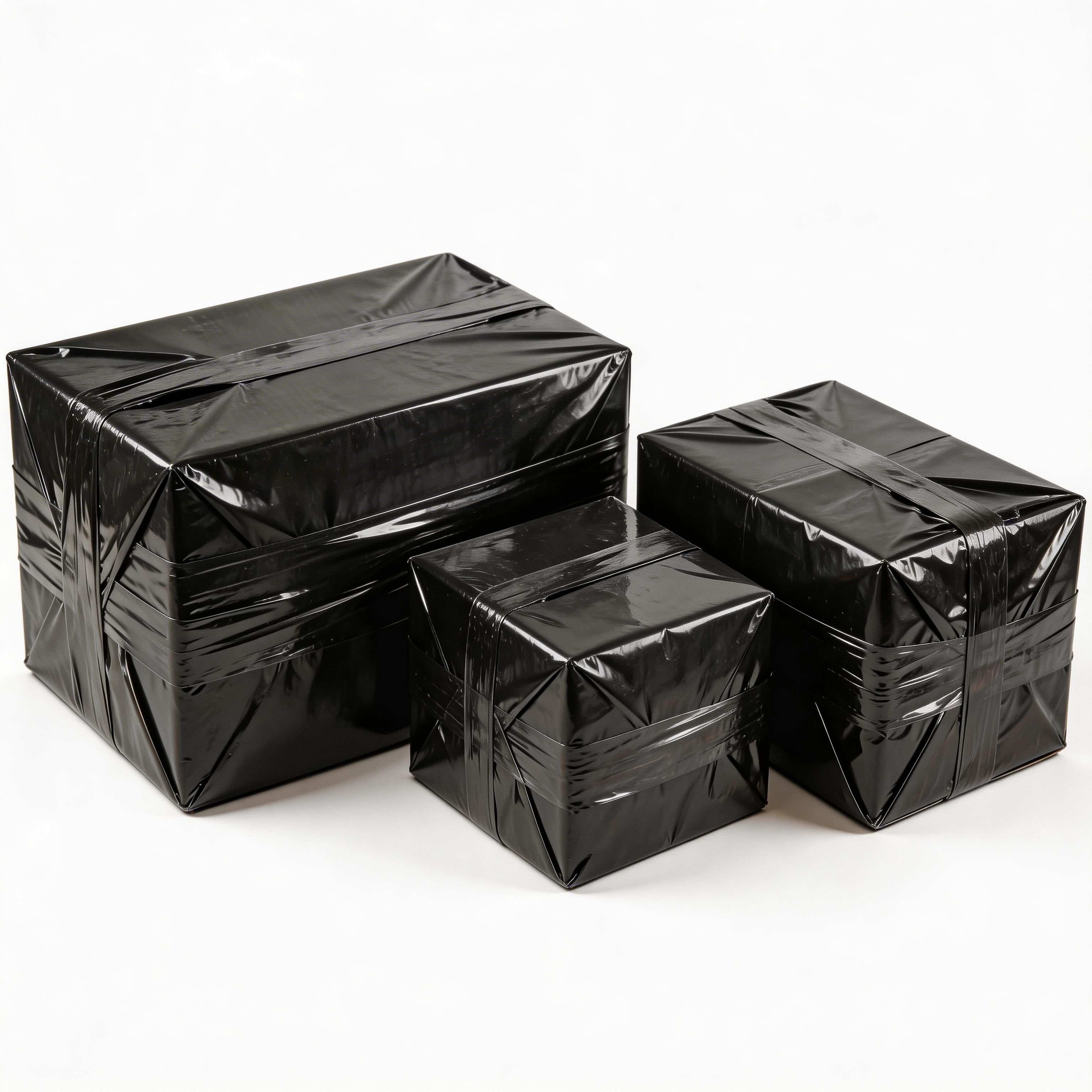 Чтобы сохранить конфиденциальность заказа, такая коробка дополнительно фиксируется чёрной стрейч-плёнкой. Она полностью закрывает коробку снаружи и скрывает её внешний вид.